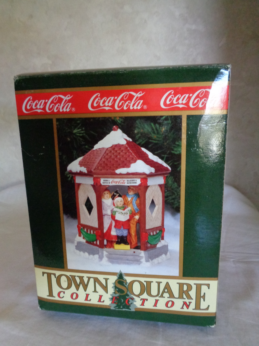 #6409 Town Gazebo Coca Cola Town Square Collectionl #56217 UPC: 715429562175 1994. Gazebos like this one were built in parks in the center of town serving a multitude of community needs, ranging from a stage for budding artists and musicians to the scene of exuberant political speeches. The carolers were repaired. Please see pix for a complete description. It was made in Thailand. UPC: 715429562175 Please see pix for a complete description.