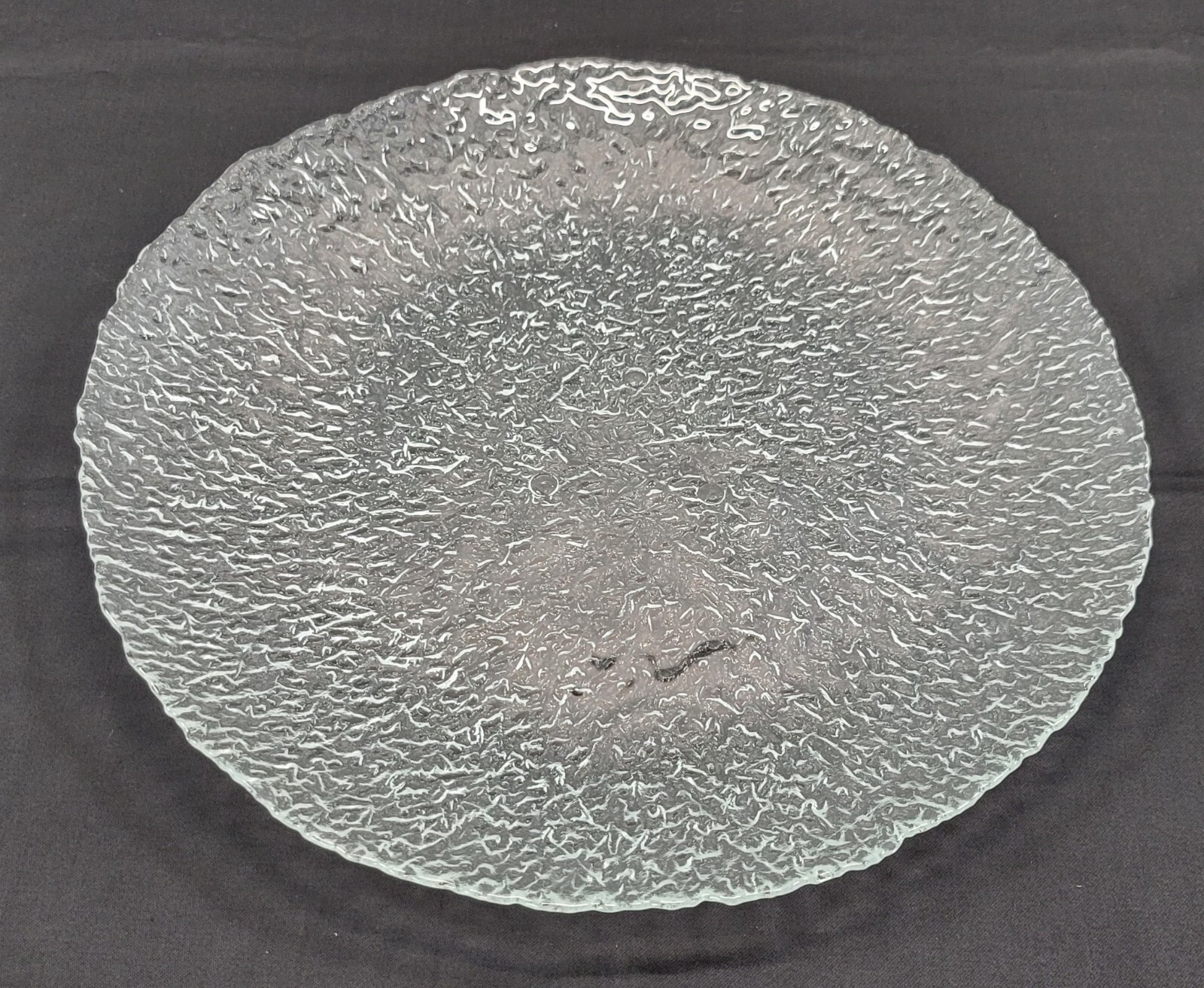 Ice Textured Pebbled Large Round Clear Glass Serving Platter Dish
