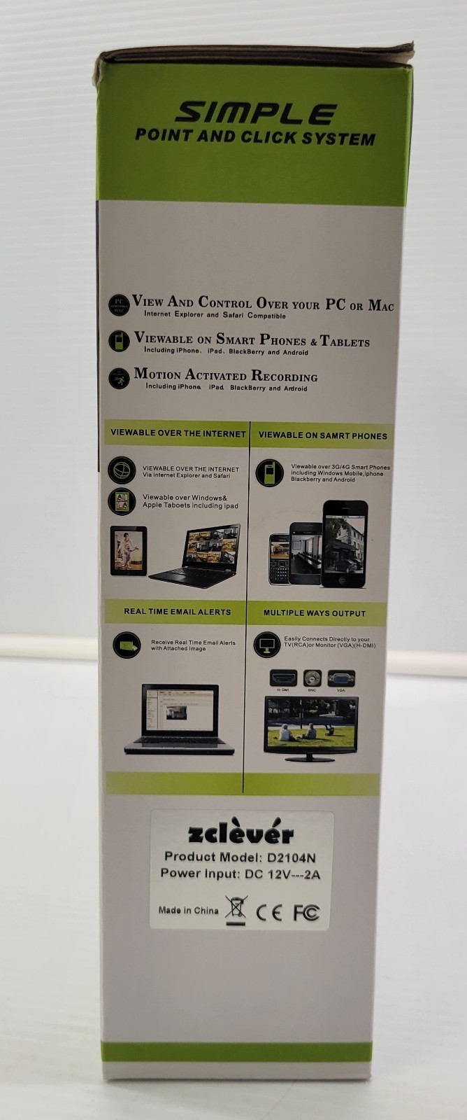 *B) zClever Model D2104N Network Video Recorder Security Camera System
