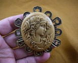 - (CL18-29) LARGE BEAUTIFUL woman LADY flowers tan CAMEO Brooch Pin Pendant
