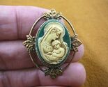 - (CS13-18) MADONNA Mary baby Jesus white + green oval CAMEO Pin Pendant Jewelry