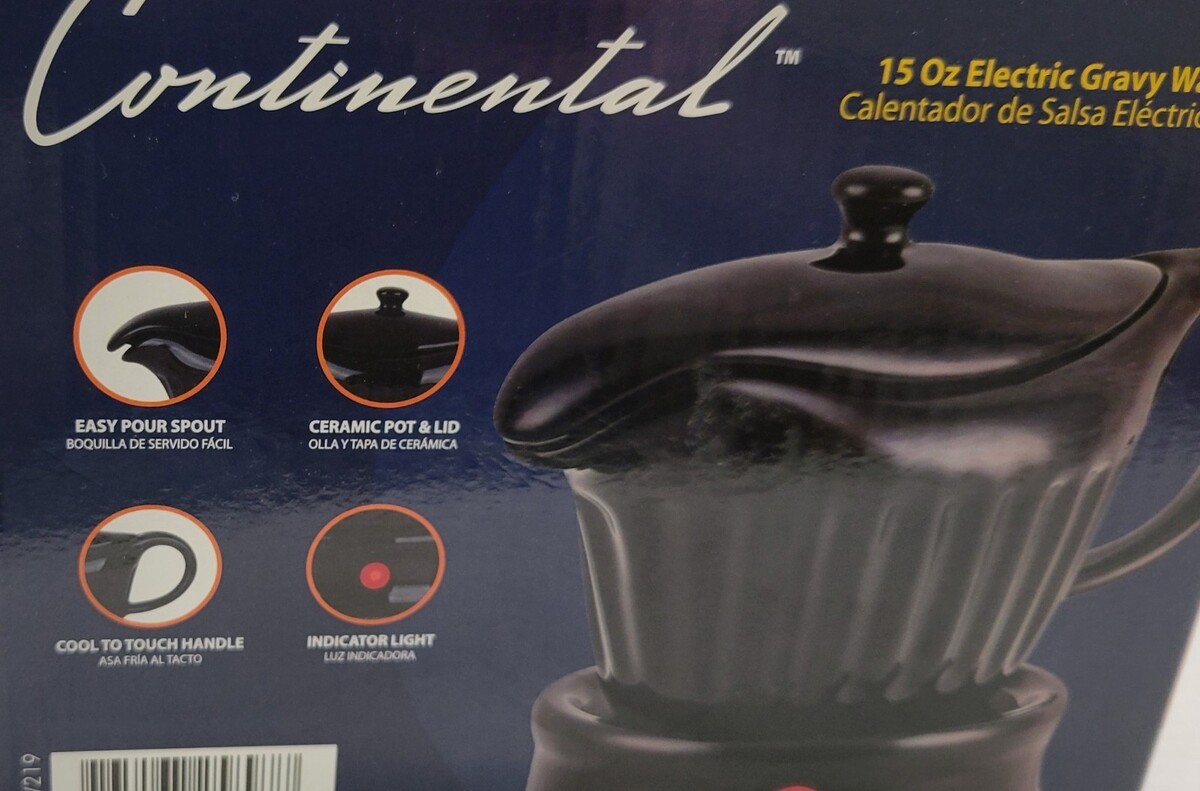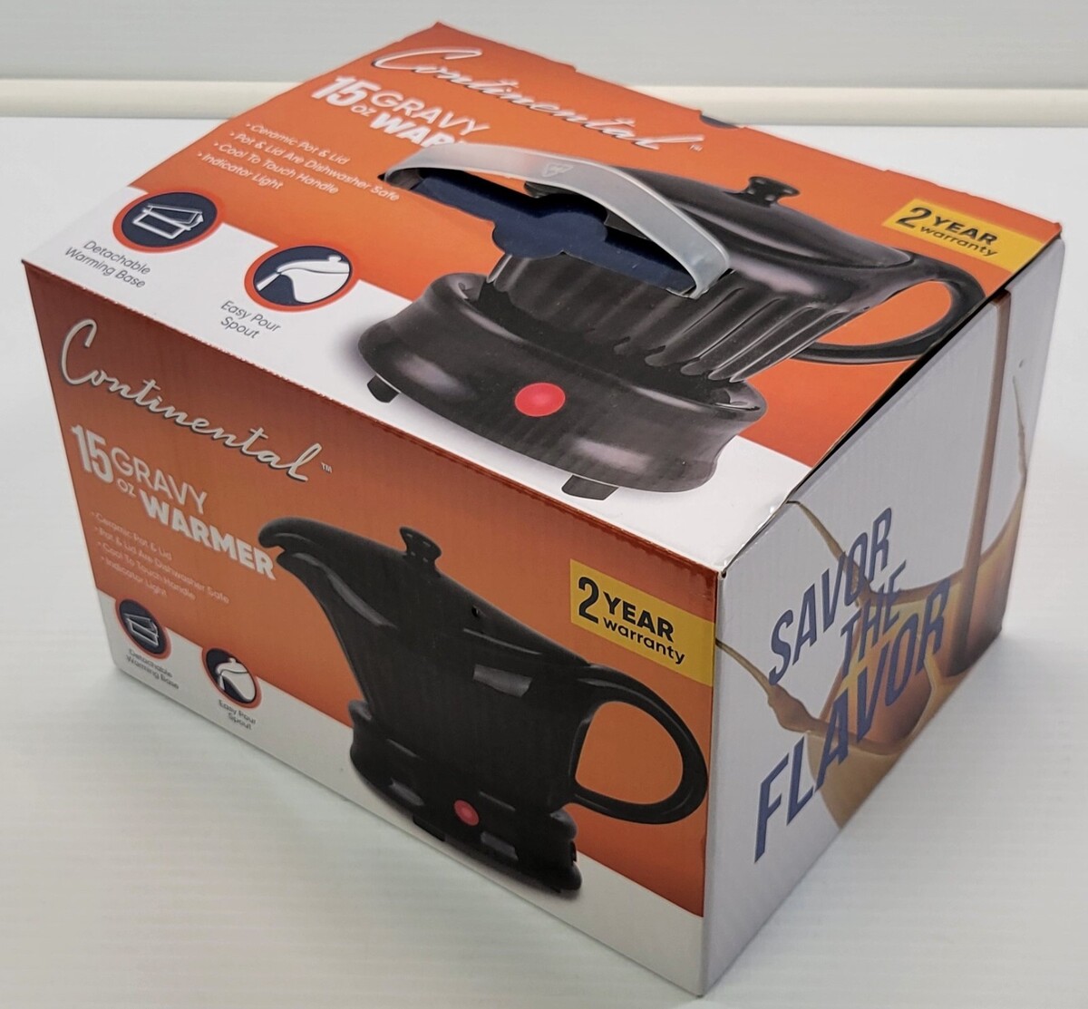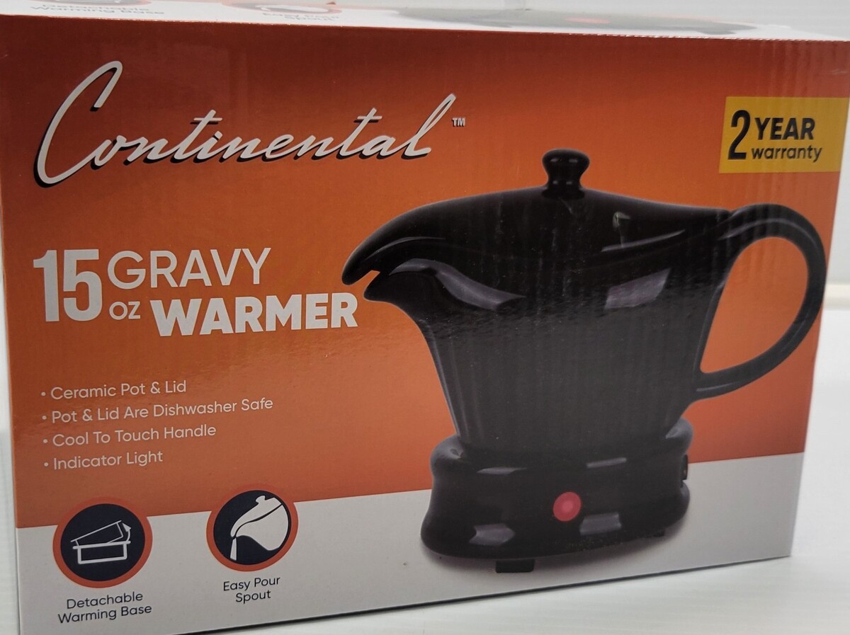 - *D) Continental 15oz Gravy Warmer Ceramic Pot and Lid - Black