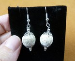 (DP3-621) REAL Late Pleistocene Stegodon gray stone bead silver dangle Earrings