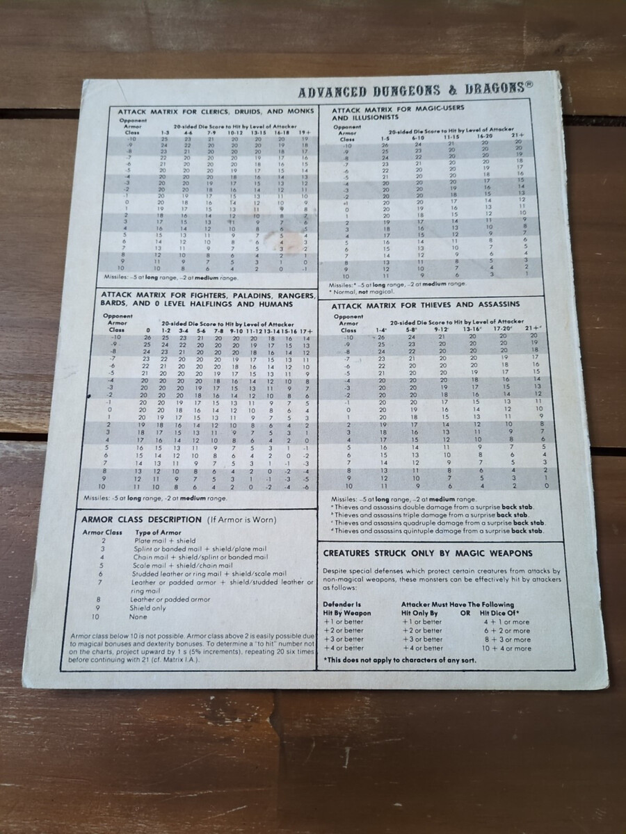 - *Damaged And Incomplete* 1981 TSR Advanced Dungeons And Dragons DM Screen