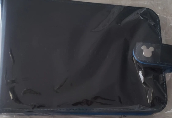 Showcase your collectible VIP Pins in this fashionable leatherette pin binder, with charming Mickey Silhouette metal button closure. This 2 metal ring binder includes 4 velvet lined pages (approximately 7.5" x 5.5") with plastic dividers to protect your VIP Pin collection. Pin Binder measures 8.75''W x 6"H x 2"D.
