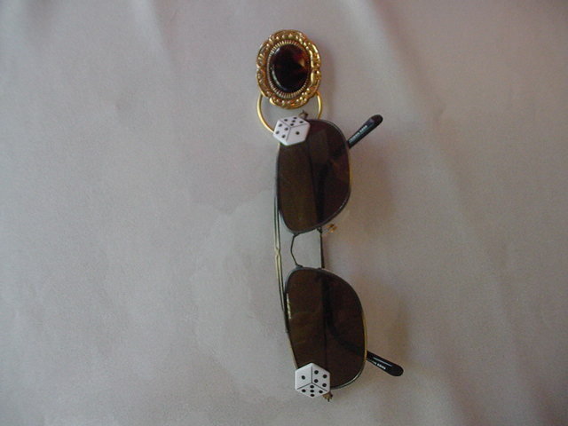 This is a pin/pendant that double as a loop for your EYEGLASSES/SUNGLASSES or BADGE HOLDERS at your place of work. Never lose them again! Designs by Heidi, using vintage jewelry parts and vintage glass buttons.