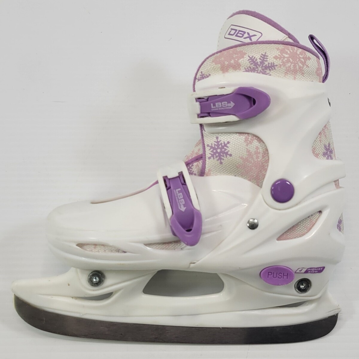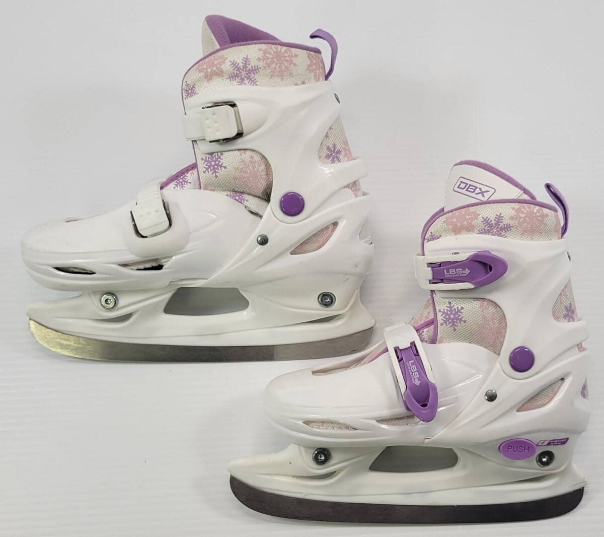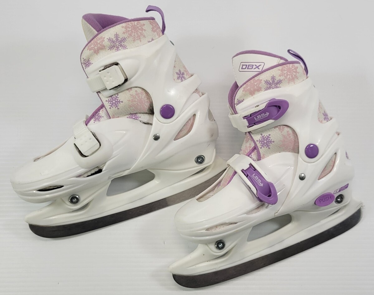 *E) DBX Adjustable Girl Ice Skates Trainers Size 1-4 White Purple