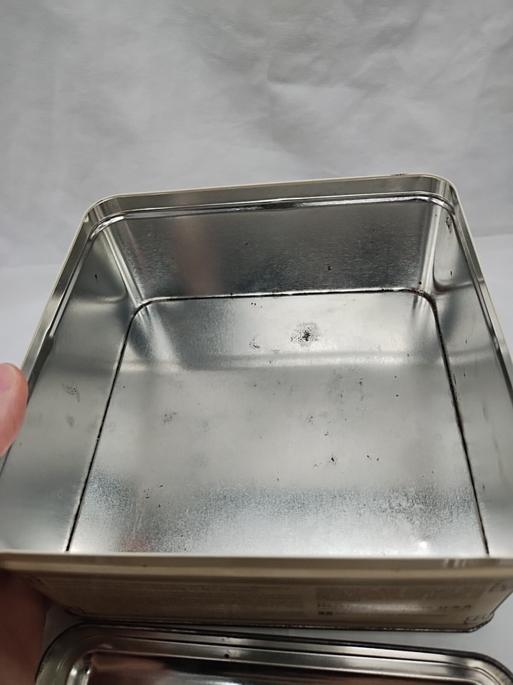 The inside of the tin has marks and wear, overall it's still in good shape, see pictures please.