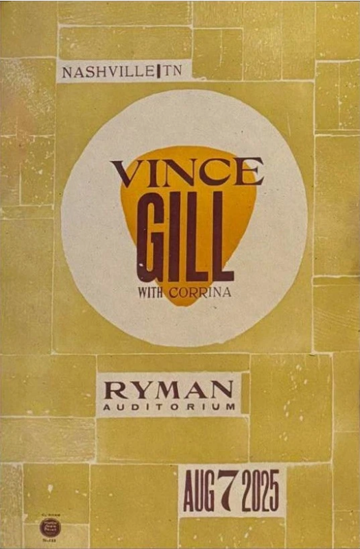 - ~HOT!~ Aug 7, 2025 at Ryman Auditorium, Nashville, TN Vince Gill Poster.