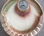 "Hyde Park" 1901 Metal Monogrammed "A" Ashtray Ivory~ Green and Brown Drip Glaze