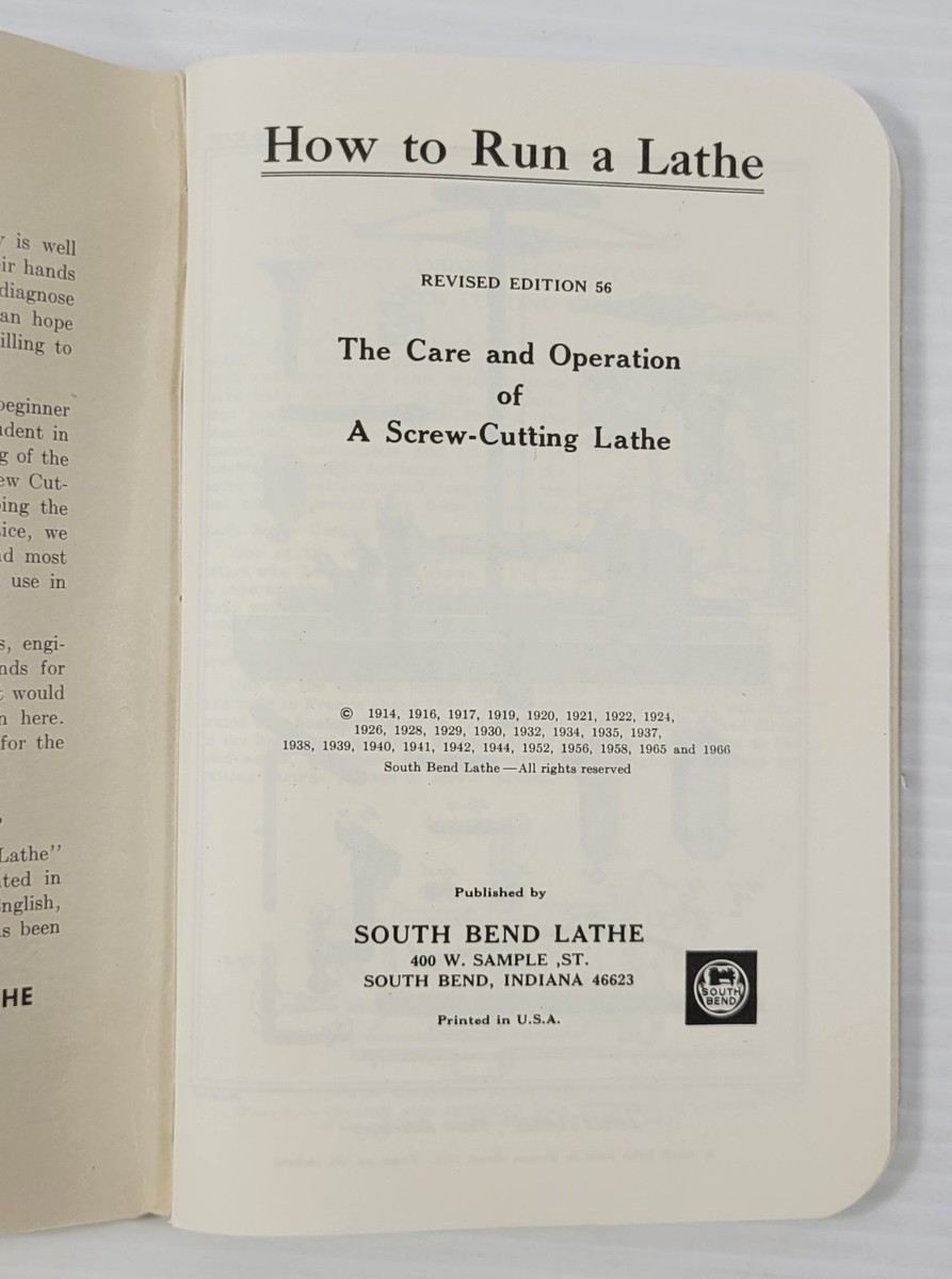 - *L21) How to Run a Lathe South Bend Lathe (1966 Paperback Manual Guide)