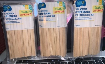 (LOT OF 3) Thin Wooden Craft Sticks 5.75"x.27"x.08" Resealable Packages, NEW