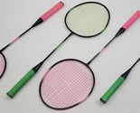- *M) Vintage Set of 4 Badminton Pink Green Tempered Steel Rackets