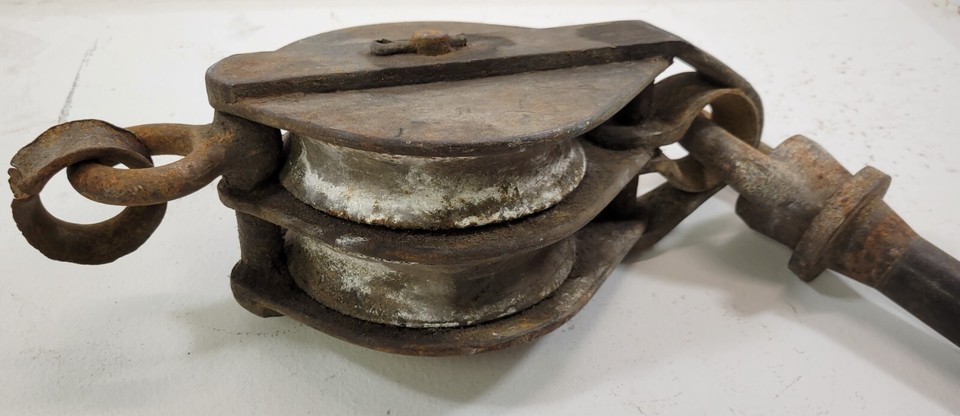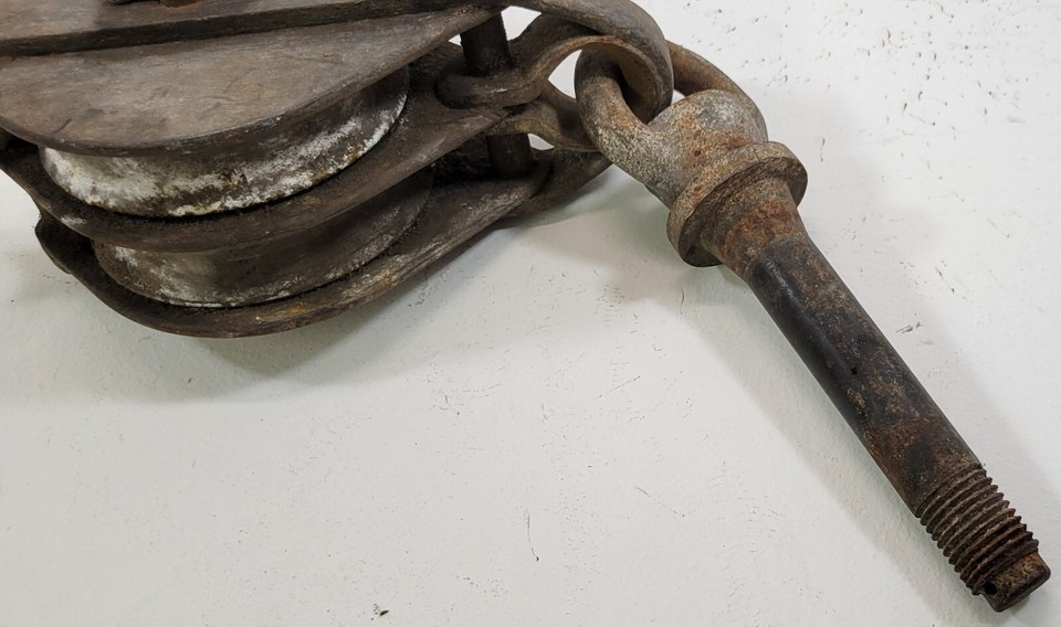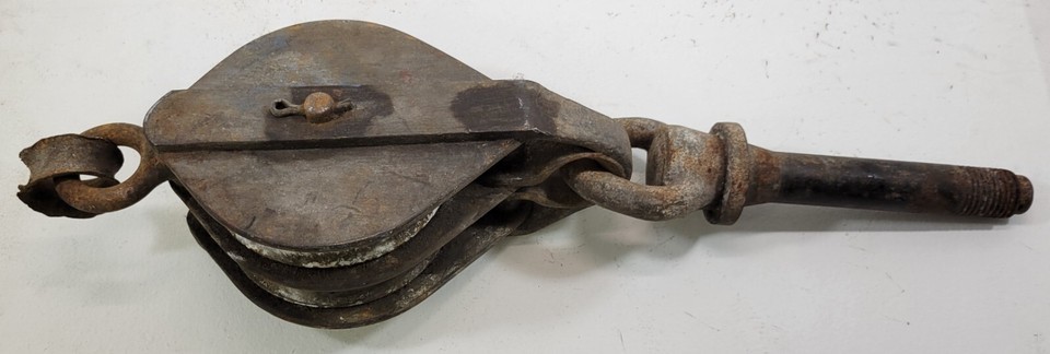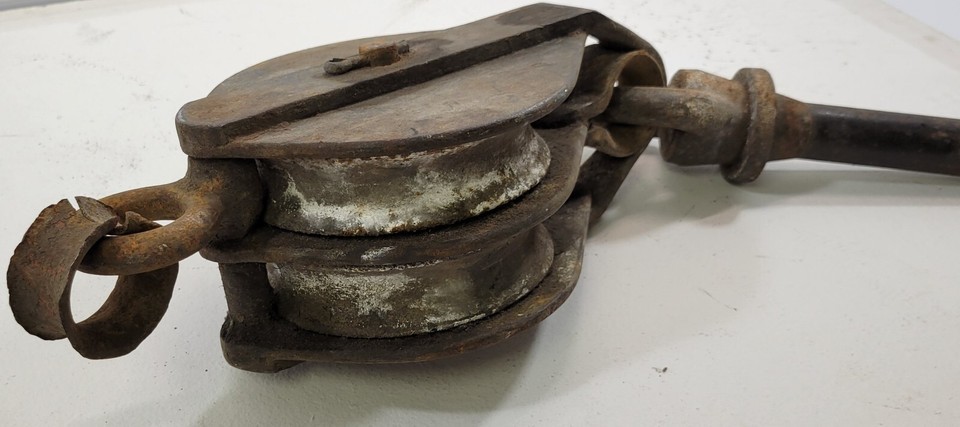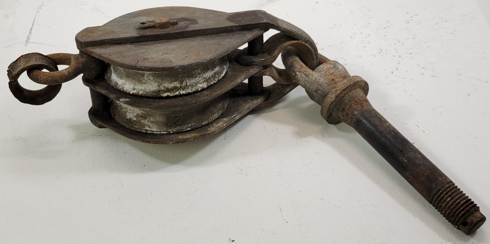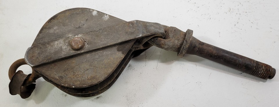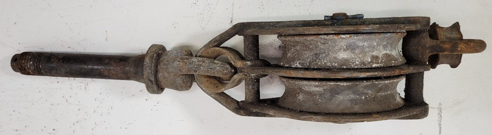 - *PV) Large Vintage Heavy Duty Double Pulley Threaded Automotive Garage Tow