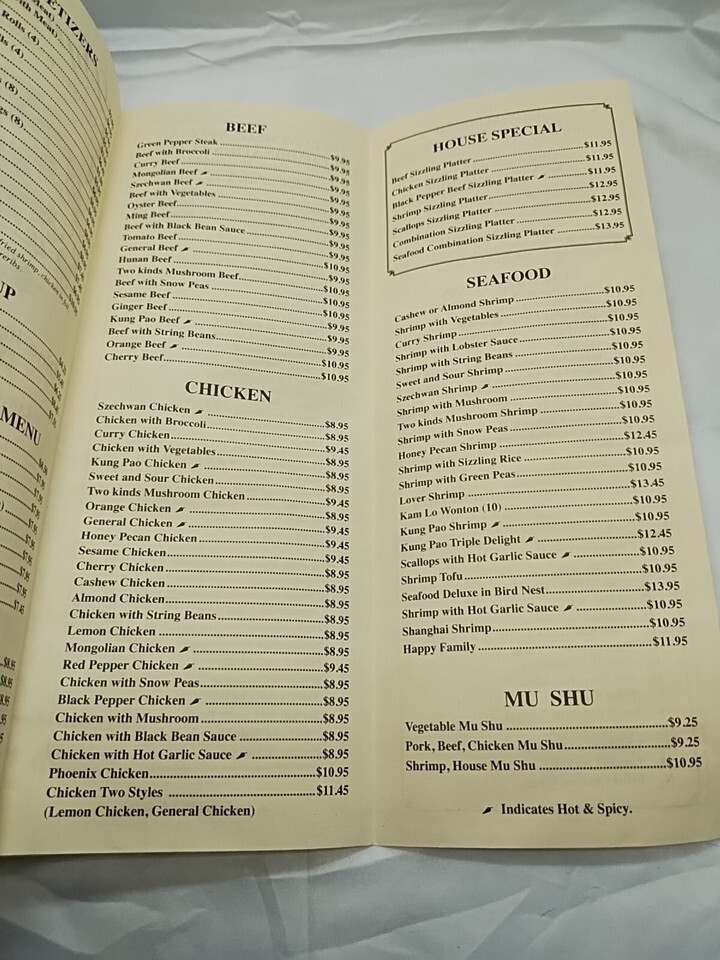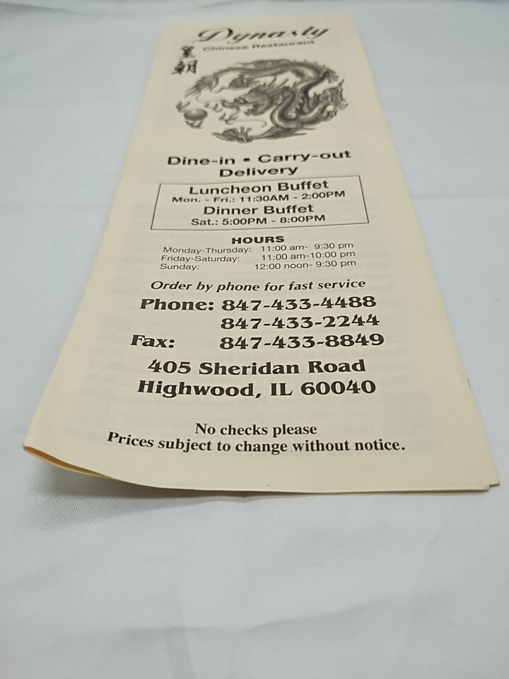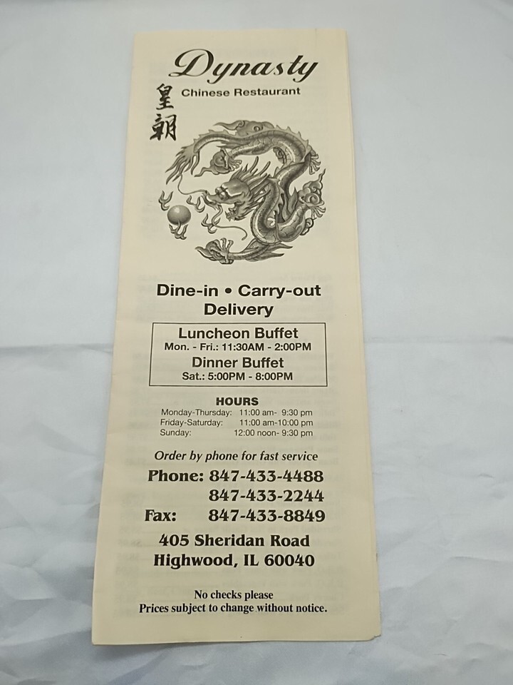 *Permanently Closed* Vintage Dynasty Chinese Restaurant Menu