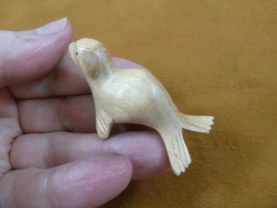 - (Q210-10) small baby Seal sea lion Satinwood WOOD carving wooden FIGURINE seals