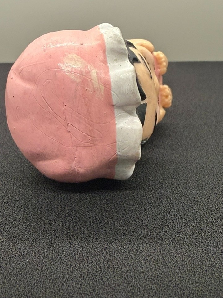 This Rare Baby Betty Boop Valentine's Day Pink Heart Hugs Kisses PVC Figurine from 1990 is a vintage collectible featuring the beloved cartoon character Betty Boop. Standing at 1 3/4 inches tall, this limited edition figure captures the playful and endearing essence of the animated series. Made of PVC and rubber, this figurine is a nostalgic piece that would make a perfect addition to any animation merchandise or cartoon and TV character-themed collection.