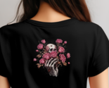 - "Skull and Roses Gothic T-Shirt - Elegant Floral Skeleton Graphic Tee for Dark A