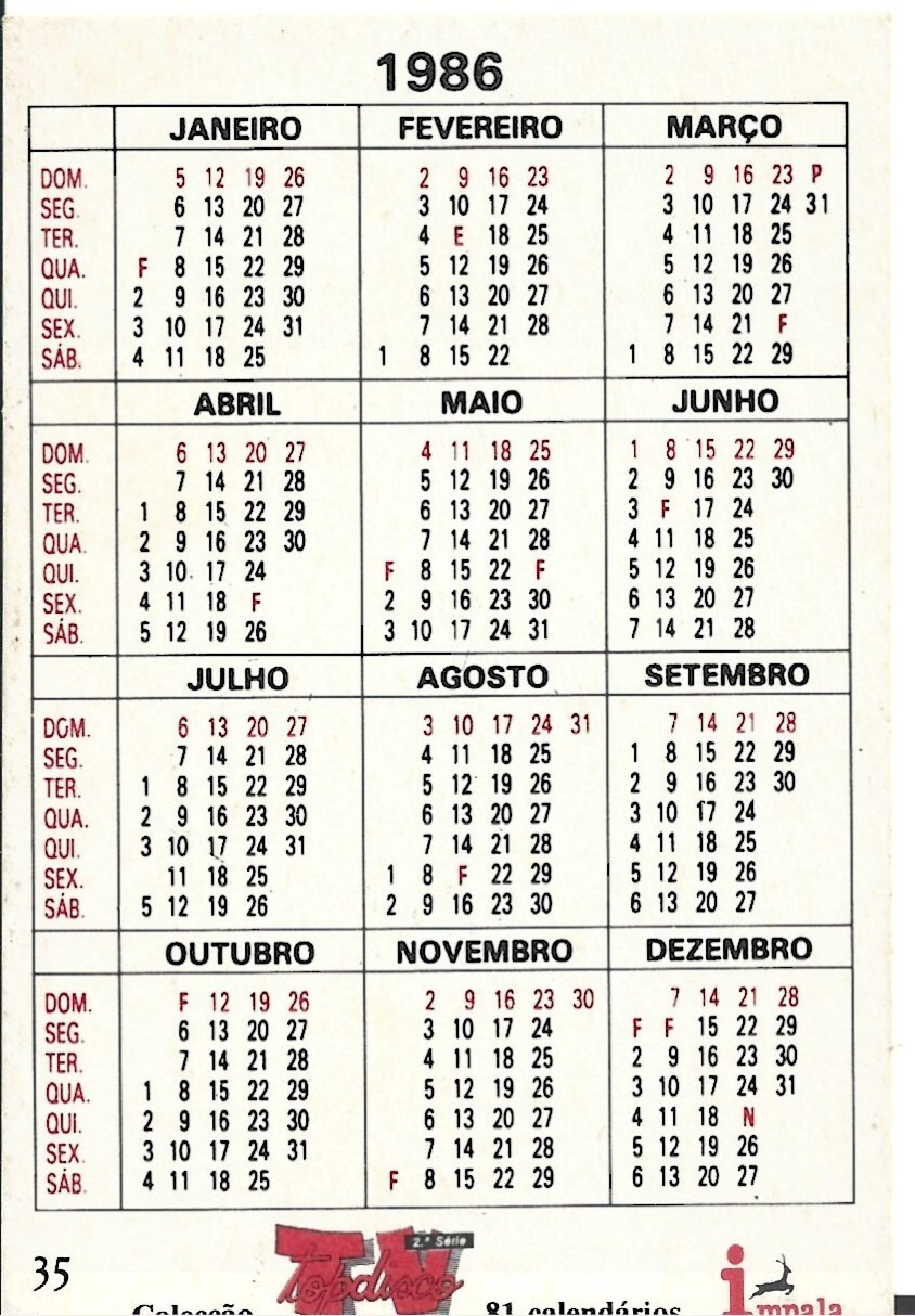 ⭕VTG card pocket calendar 1986 LITTLE STEVEN Portugal group music singer