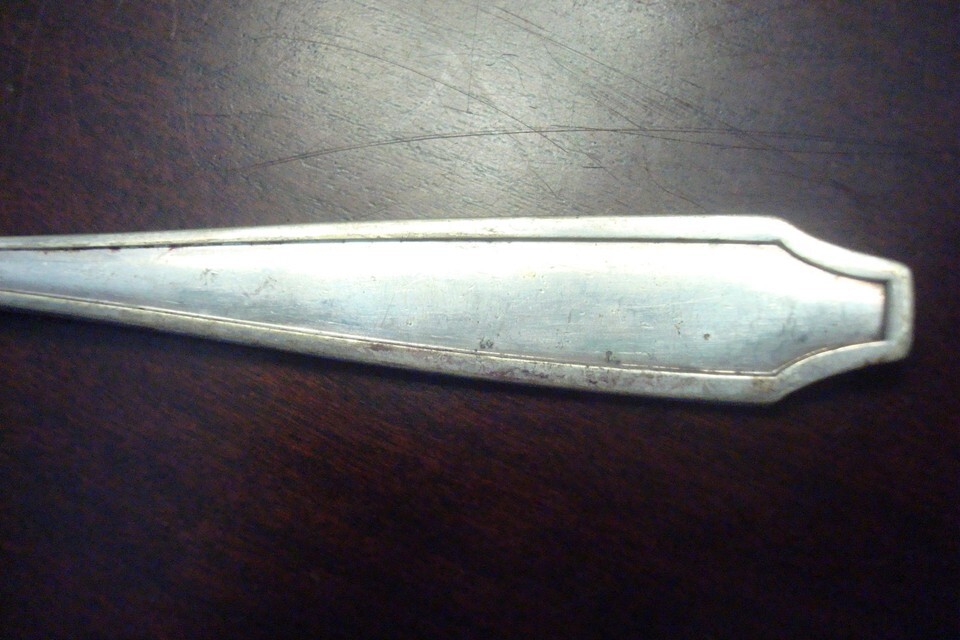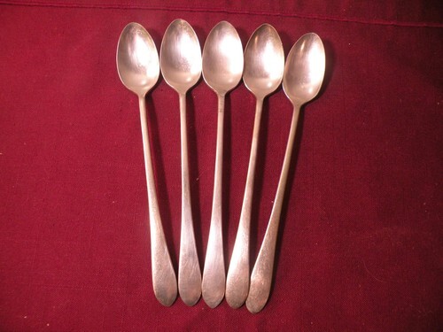 Wallingford Co. 27 Iced Tea Spoons "Bedford" 5 spoons 8" long, some light surface scratches and patina fading commensurate with age