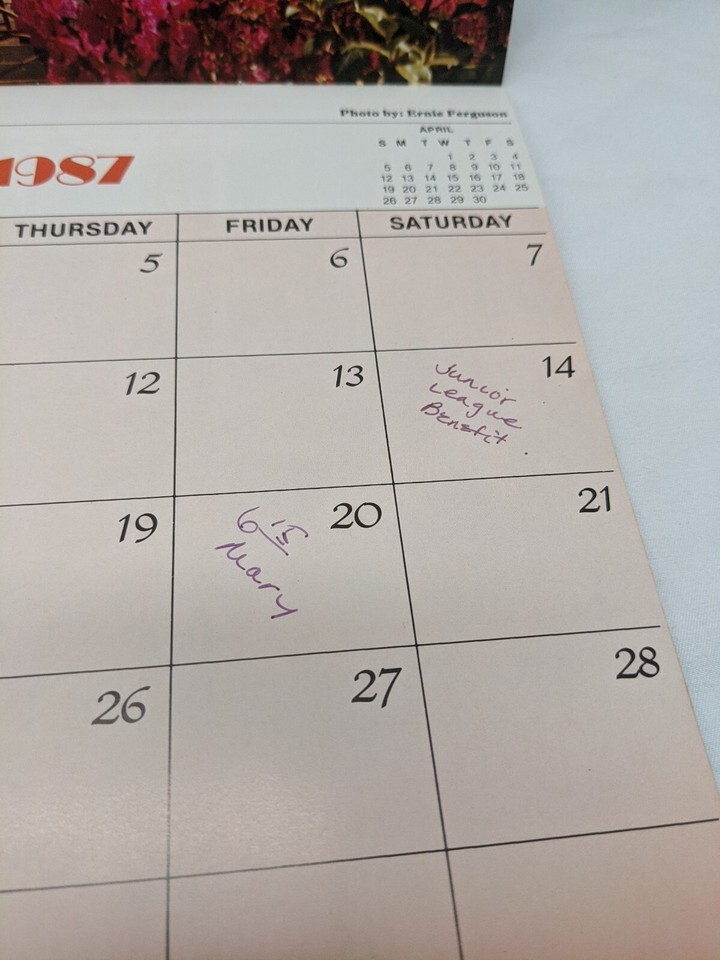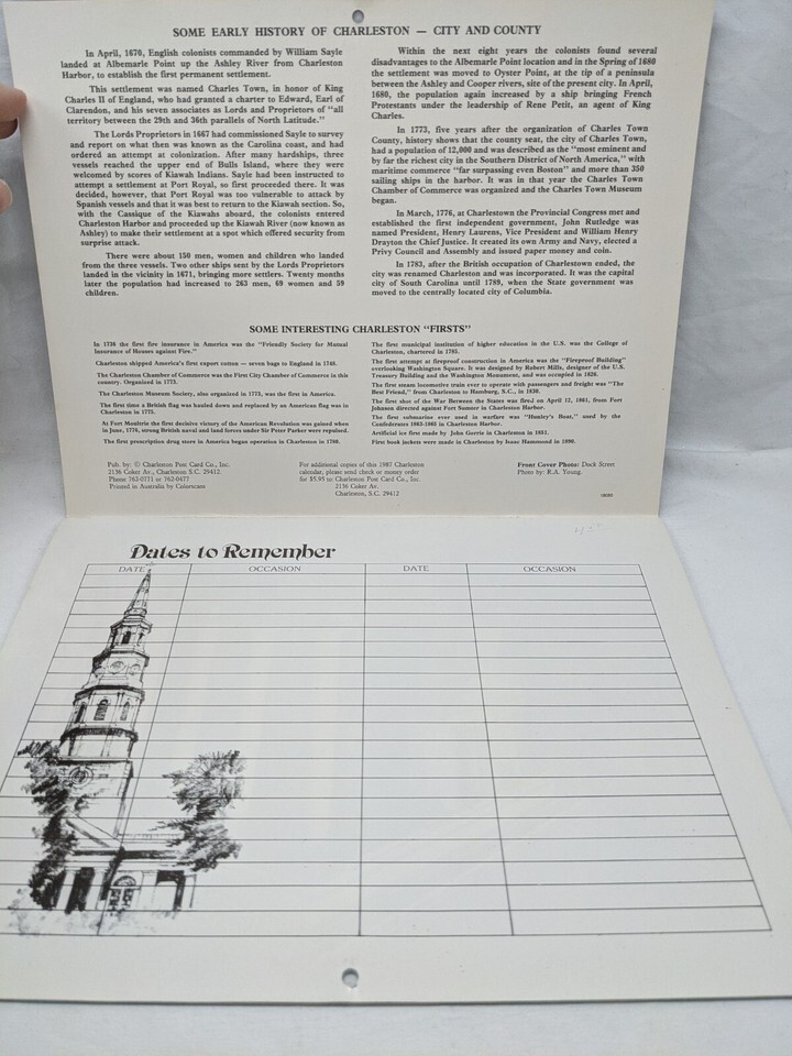 - **Written In** Charleston South Carolina 1987 Calendar
