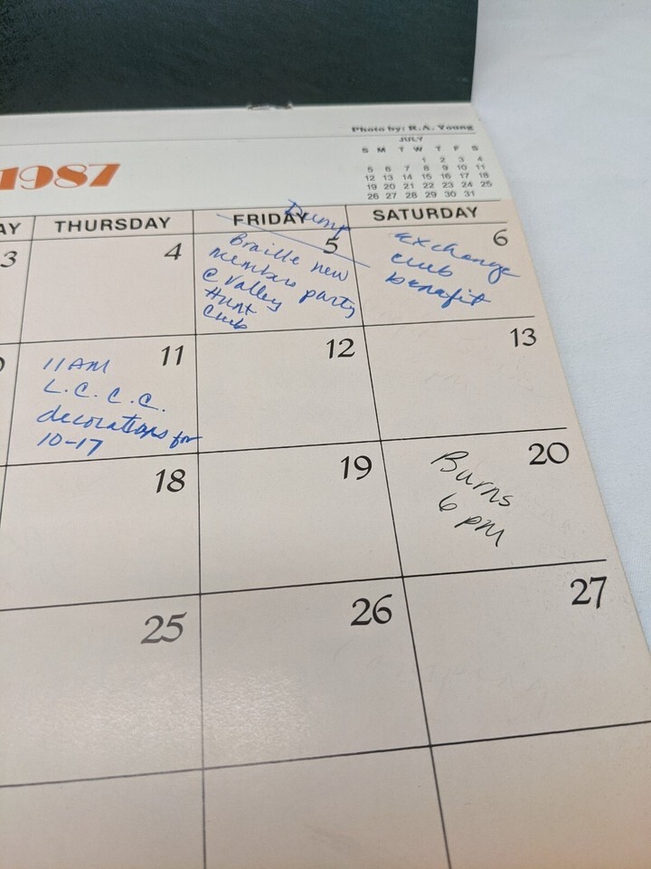 **Written In** Charleston South Carolina 1987 Calendar.