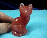 (internal #Y-CAT-SIC-707) Excellent figurine of a noble SITTING CAT, it is 2-1/4" tall. Superb quality polished STRAWBERRY QUARTZ glass (man-made, though it has a gemstone status), this gem has been hand-crafted in China. New, no defect.