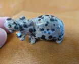 (Internal #Y-HIP-552). SUPERB gemstone figurine of a ROARING HIPPO of polished, natural SPOTTED BLACK WHITE DALMATIAN JASPER gemstone, is 1-5/8" long, hand crafted in CHINA. New, no defect.