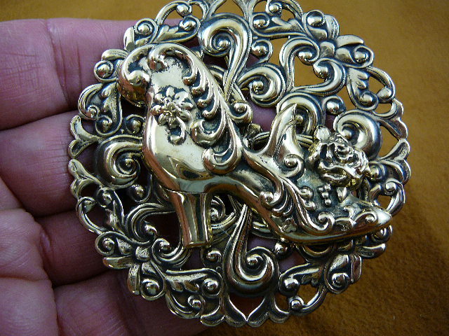 (internal #B-SHOE-1) This is a brass -duction - stamped - style shoe with flowers and scrolled design on a piece of filigree brass, made into a pin/pendant (glued on the back) with beautiful detail.
