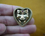 Internal #BR-201) This is a beautiful theater mask face with pink bindi on a piece heart shaped brass, made into a pin/pendant (glued on the back), 1-3/8" long x 1-3/8" wide. This gorgeous reproduction Victorian stamped brass is antiqued, then buffed to create some shine.