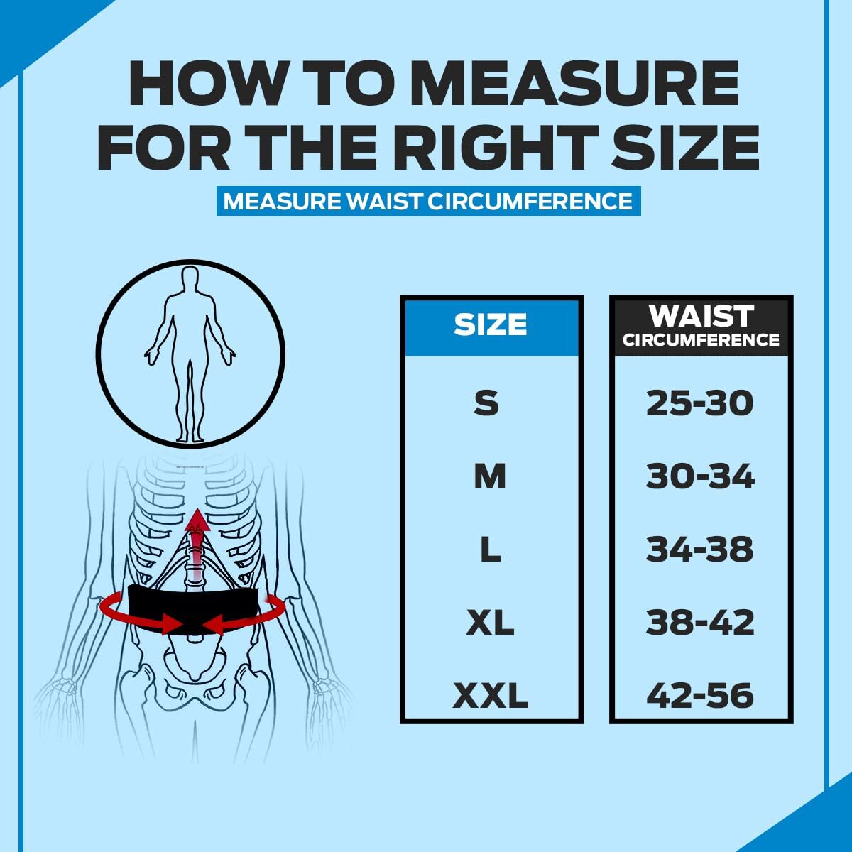 Adjustable compression: An overlapping double-pull strap system allows the user to increase or decrease support to the lumbar and abdominal areas.