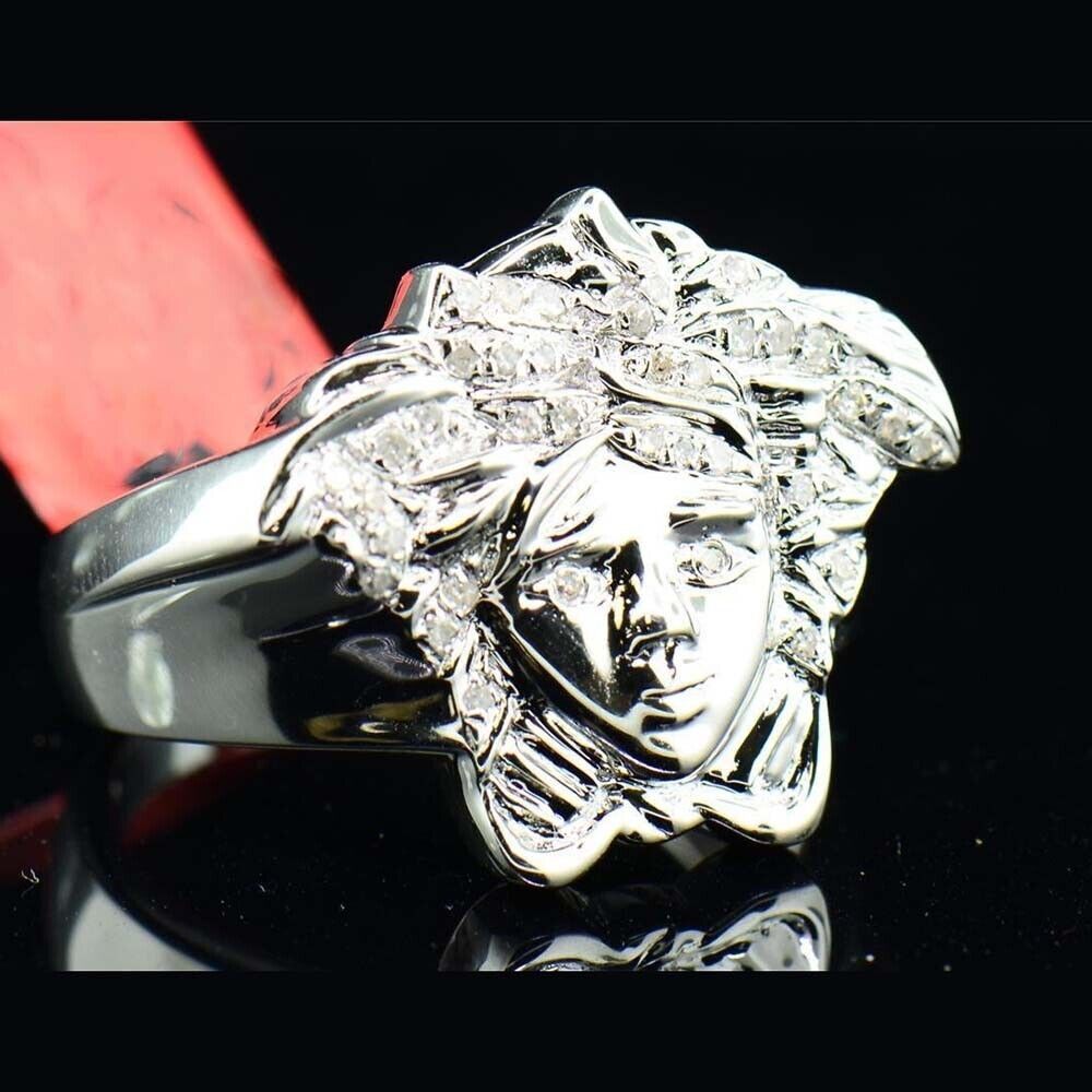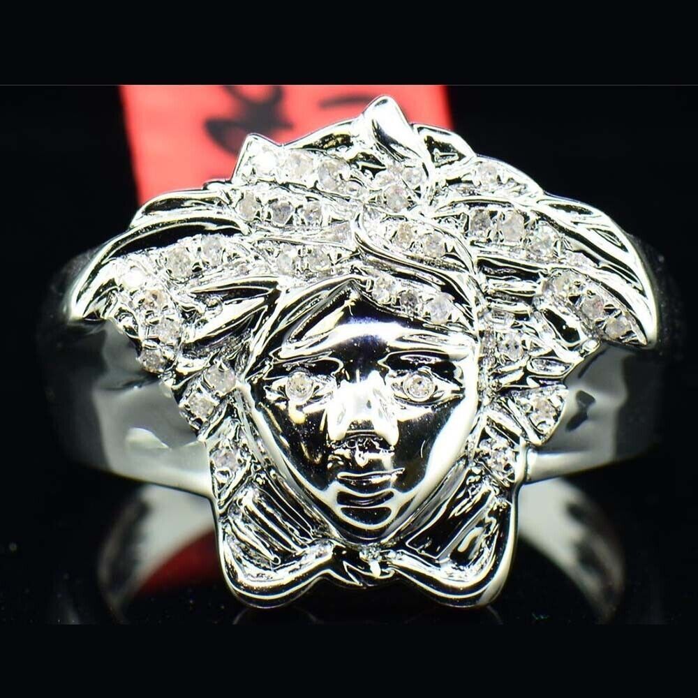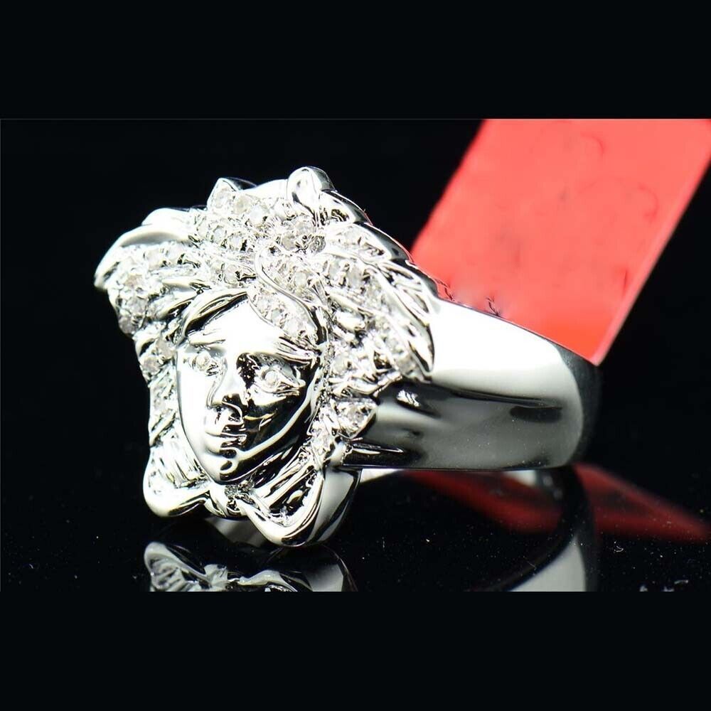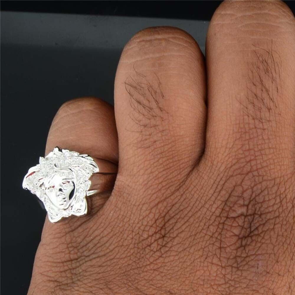 - 0.25 Ct Brilliant Moissanite 14K White Gold Plated Medusa Head Pinky Men's Ring