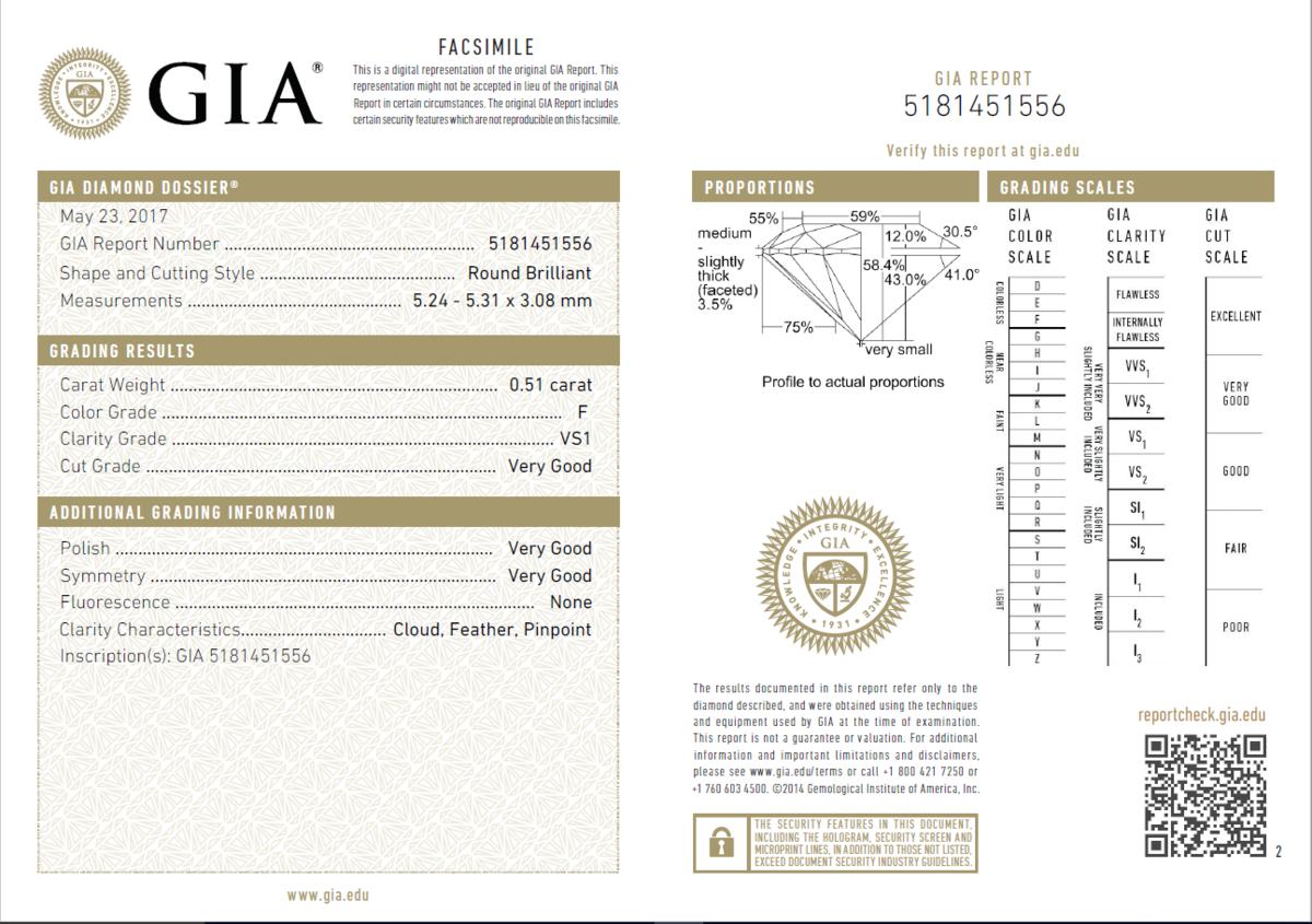 - 0.51 Carat Loose F/ VS1 Round Brilliant Cut Diamond GIA Certified