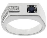 - 0.60 Ctw Round Cut Blue Sapphire 14K White Gold Plated Solitaire Men's Band Ring