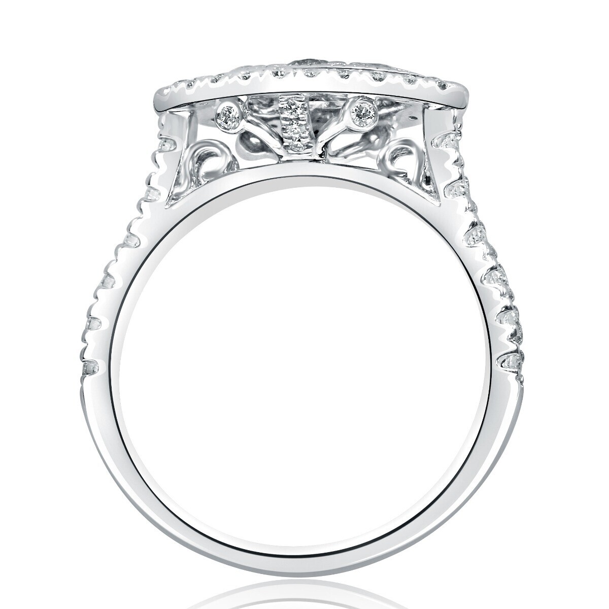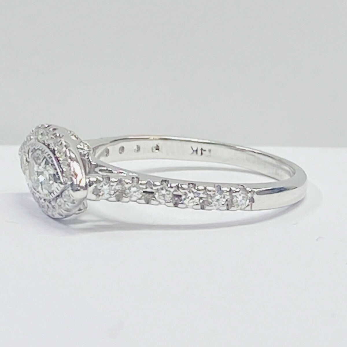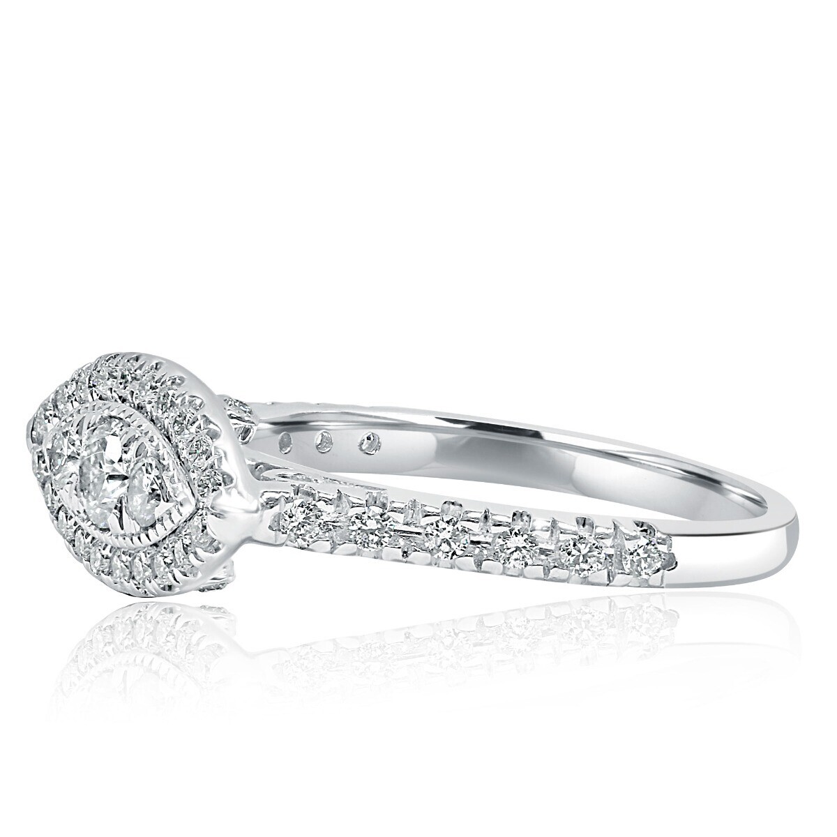 - 0.61 CT Marquise Halo Shaped Round Cut Natural Diamond Ring 14k White Gold