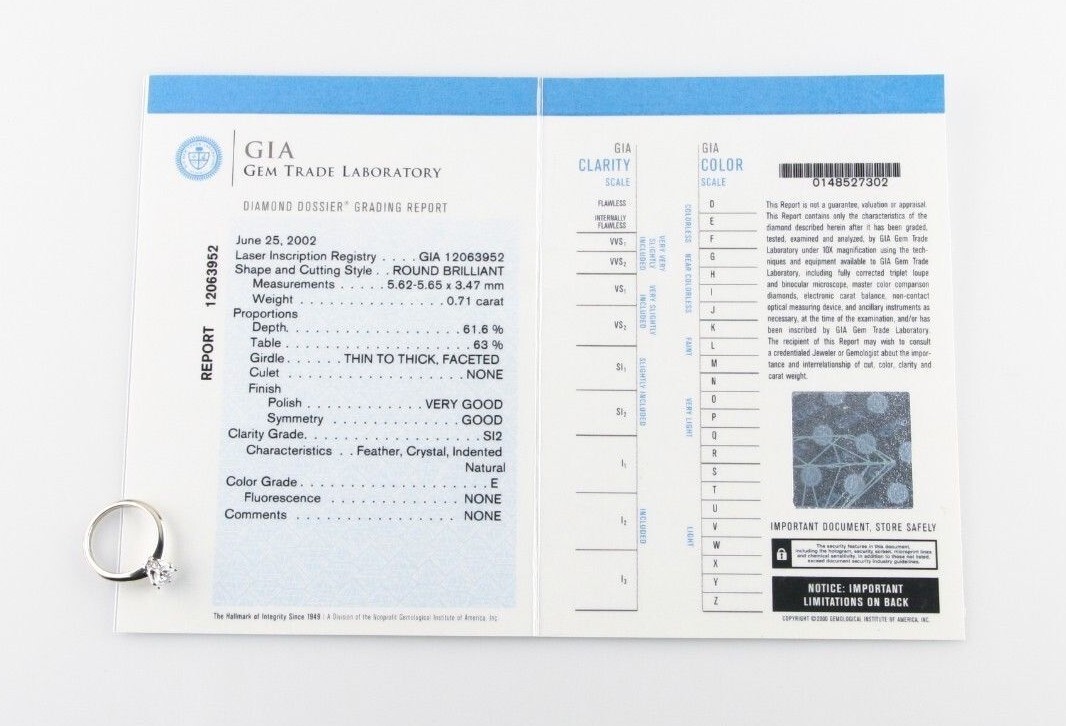 Features 0.71 carat Prong-Set Round Brilliant Diamond w/ GIA Cert