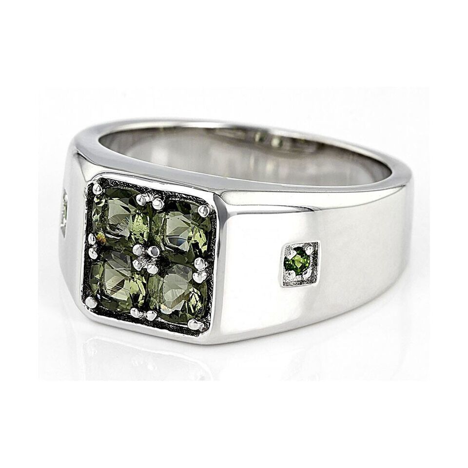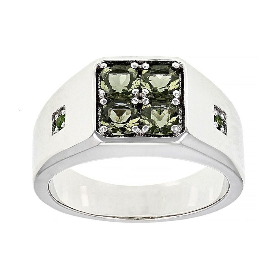 - 0.86Ct Round Cut Green Tourmaline 14K White Gold Plated Center Design Men's Ring