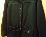 Here for bids is a funky 1970 s era green button up blazer or heavy shirt with wide collar. Size 13 14. Jacket measures approximately 17 inches from armpit to armpit approximately 25 inches from shoulder to waist. Has 2 open pockets on the front with buttons are just for looks. Has seven buttons down the front that function. It is a forest green color. See photos and I ask any questions thanks for bidding and good luck. Check out our my other items for some great finds I can combine shipping on most items.