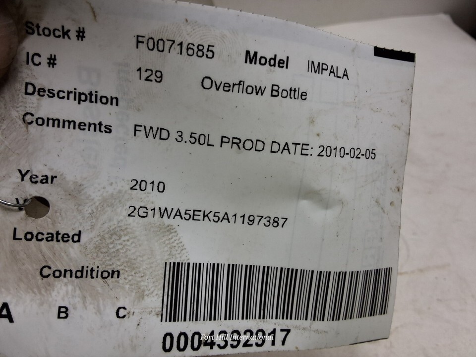 2005 to 2010 Chevrolet Impala, Monte Carlo, Buick LaCrosse, radiator overflow bottle.