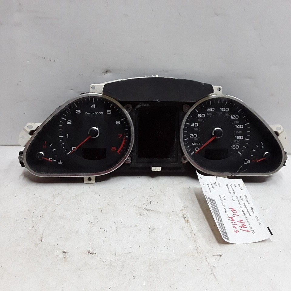 welcome to Fort Hill International Auto Parts Description 2009 through 2011 Audi A6 mph speedometer, 101,441 mi. Verify Your Part Numbers To Ensure Proper Fit and Operation. Matching the year and vehicle is not always enough because there may be several variations of the part. This Is Your Responsibility To Make Sure The Part Is What You Need, And Will Work With Your Application. Your Part Numbers Need to MATCH To Be Sure! If you are purchasing any item that is electronic in nature such as Radio's, Control Modules, ECM, ECU, Please be aware that you may have to have the item programmed in order to function with your vehicle. Some will simply plug and play without programming. We Do NOT Supply Radio Unlock codes, They can be accessed from your local dealer, or manufacturers web site. T453-3914077 Payment Ready to order? We accept Paypal which allows you to pay with most major credit cards. Shipping We ship all orders within 24 hours. However it is up to you to choose the speed in which your item will arrive. All items come with free tracking which is uploaded to you once the postage is generated. We offer several shipping options please be sure to choose the one that will work best for you. Remember shipping times are only estimates and in no way a guarantee of arrival time. Terms of Sale Thank you for choosing Fort Hill International. All of our parts are used and in good working order when removed from the donor vehicle. Some electronic parts will have to be programed by a dealer or mechanic in order to work properly. Some Radios will require codes to "Unlock" them, others just plug and play. RDS Radios almost always have to be dealer installed. Codes can be obtained from your local dealer or over the net by typing "radio codes" into your browser. We do not supply codes or cover installation expense. If your unsure if your part needs programing contact us or your dealer before purchase and we will do our best to help you out. . Contact Us Email with specific Questions, Its up to you to verify interchange and that this is the part you need. Return Policy 1. Please contact us before returning any item, Lets try to work it out first. 2. All parts are used and in good working order to the best of our knowledge. At times your dealer may have to reprogram your vehicles computer in order for the replacement part to work correctly. This Includes Some Radios, Modules, and Computers. Some Will Simply Plug N Play. 3. If your order had free shipping on it, the original shipping charges will be deducted from the refund. If it is our error we will refund your original shipping charges. You are still responsible for returning the item. 4. Buyer Pays Return Shipping. 5. As is parts are just like it says and are not returnable for any reason. 6. We do not guarantee color matching on parts. 7. All costs associated with installation are the buyers responsibility. 8. You are responsible for making sure you are ordering the correct part for your application. 9. In the event you need to return your item please make sure the original tag is included. All of our parts are marked prior to shipment for identification purposes. These ID marks must be on the part in order for the return to be accepted 250+ Listing Templates! Auctiva gets you noticed! The complete Selling Solution. Track Page Views With Auctiva's FREE Counter