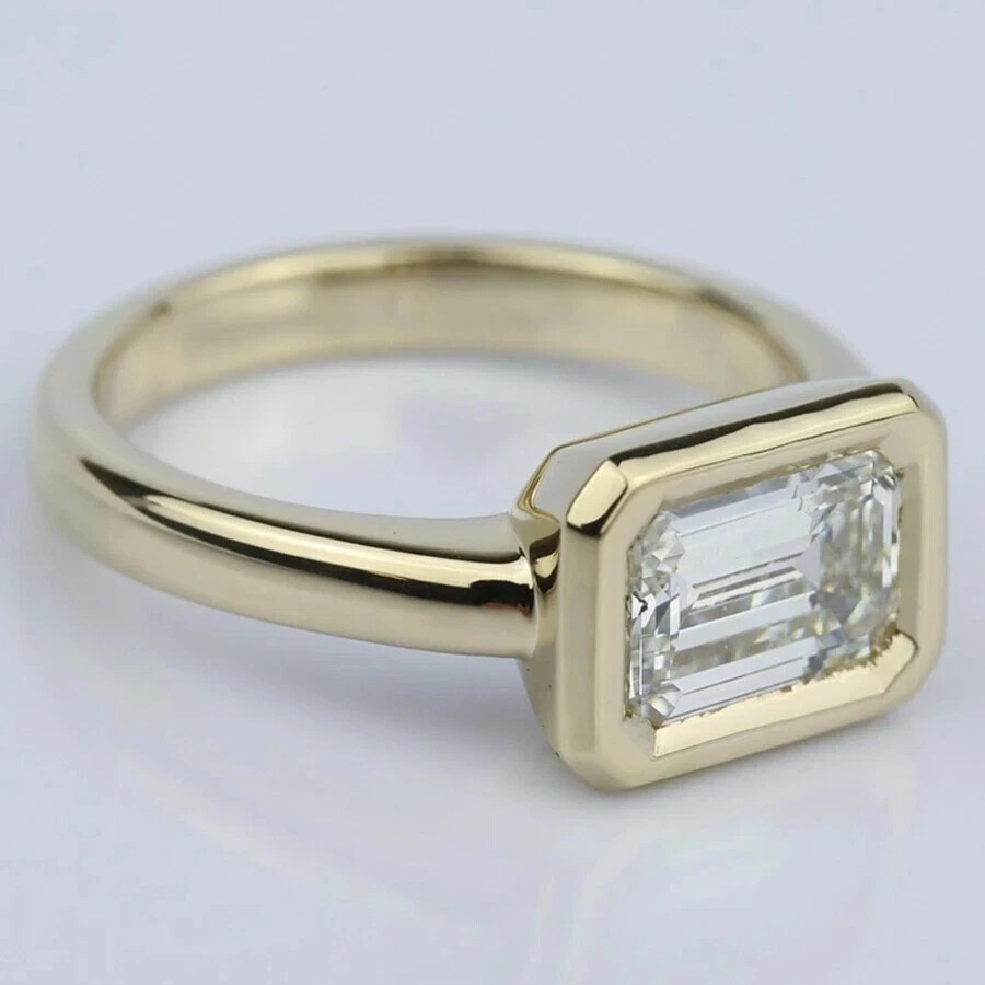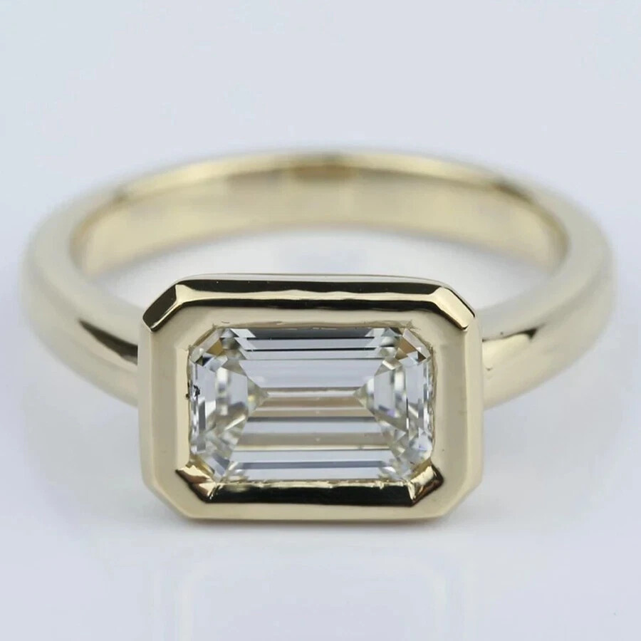 1.00 Ct Lab Grown Diamond Ring ? D VVS2 Emerald Cut Bezel Setting in 14K Solid Gold | IGI Certified