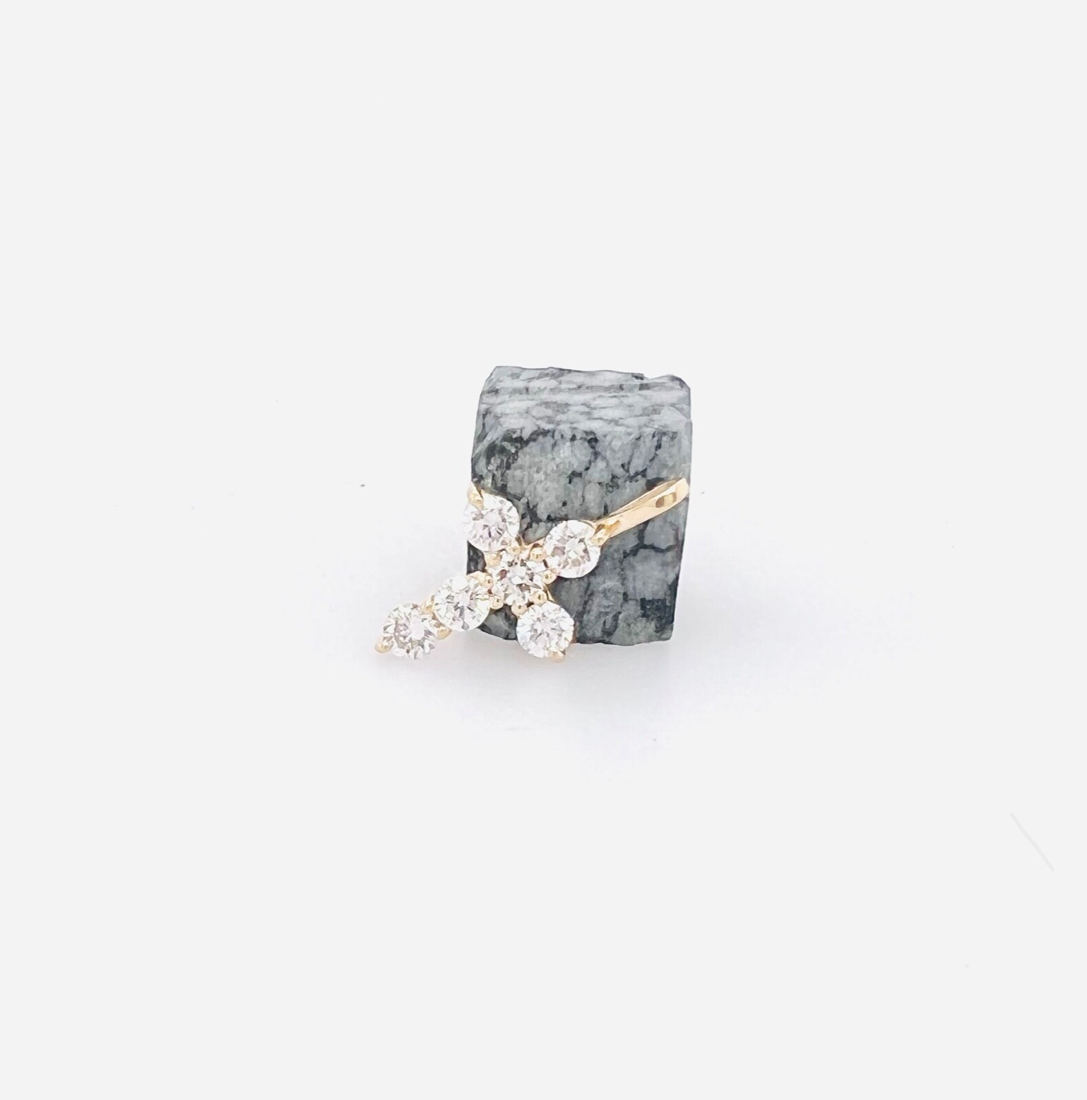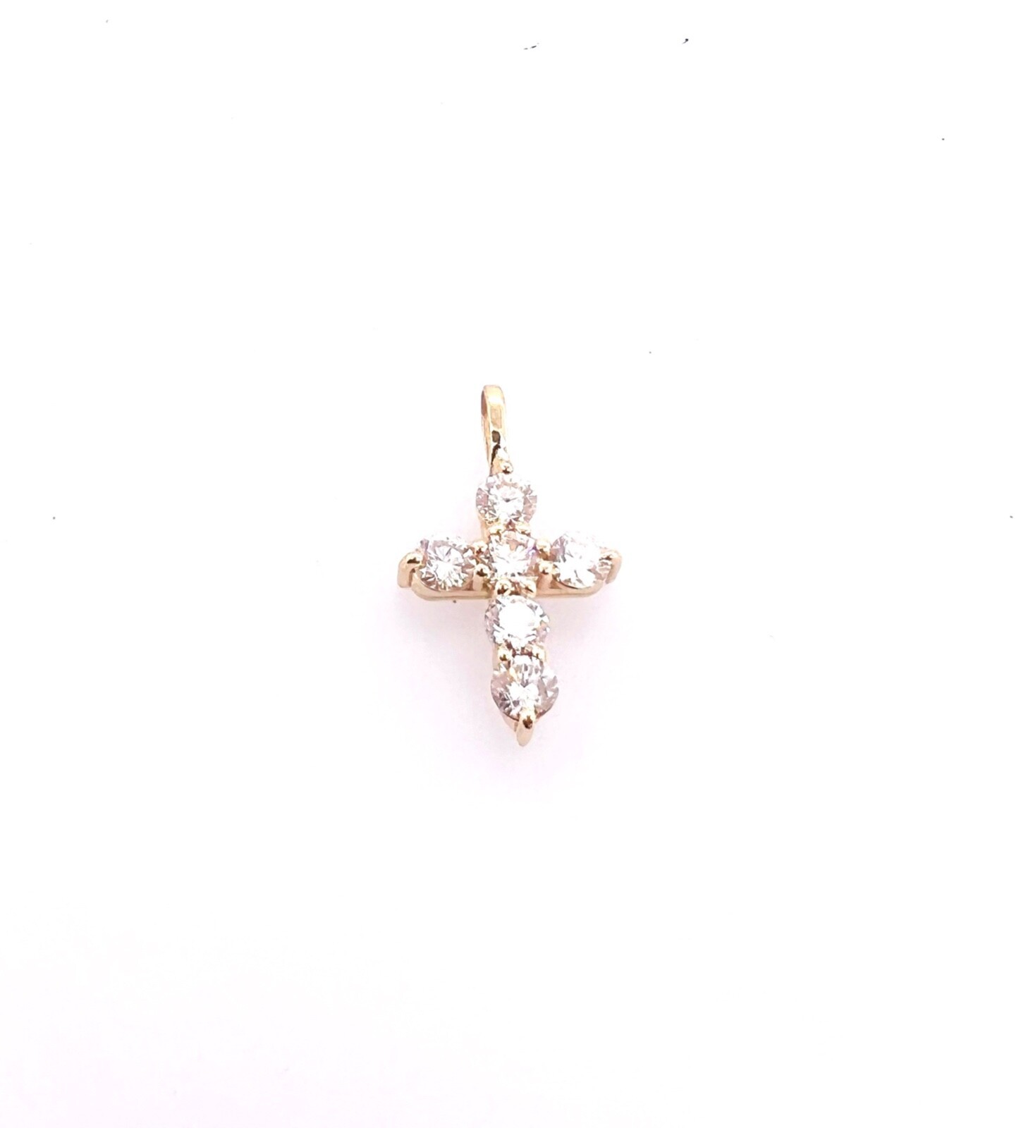 - 1.00ctw Round Lab Grown Diamond Religious Cross Charm Pendant 14K Yellow Gold