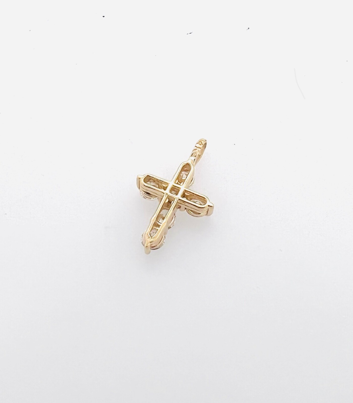 1.00ctw Round Lab Grown Diamond Religious Cross Charm Pendant 14K Yellow Gold
