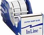 FOR SALE IS ONE (1) NEW INLINE TRIPLE ROLL 3" wide TABLE TOP TAPE DISPENSER FOR ONE (1) ROLL OR TWO (2) ROLLS OR THREE (3) ROLLS BY POWERSEAL MADE BY START INTERNATIONAL MPN SL7336 UPC# 765794073363. THIS ITEM ALSO IS ALSO SOLD UNDER THE TAPE LOGIC BRAND AS THE EXACT SAME MODEL SL7336 DISPENSER. THIS COMMERCIAL GRADE 3" MULTI ROLL MANUAL TAPE DISPENSER CAN DISPENSE THREE (3) 1" wide TAPES, OR, ONE (1) 3" wide TAPE, OR ANY COMBINATION OF 1,2 OR 3 ROLLS. TIERED METAL BARS HELP GUIDE AND SEPARATE TAPE ROLLS. UNIQUE SINGLE SPINDLE (axle) WITH THREE 1" CORES IS INCLUDED ALLOWS YOU TO USE JUST ONE ROLL, TWO ROLLS, OR THREE ROLLS, UP TO MAXIMUM WIDTH OF 3 1/4" wide. THIS DISPENSER MAY BE SCREWED TO YOUR DESK (screws are included) FOR ADDED SAFETY AND FUNCTIONALITY. IT'S EASY TO GRAB THE TAPE YOU NEED WITH THIS SINGLE, DOUBLE OR TRIPLE ROLL TAPE DISPENSER, THREE (3) INDEPENDENT GUIDES KEEP TAPES FROM OVERLAPPING. VERY STURDY HEAVY DUTY STEEL FRAME, BLUE COLOR BAKED ENAMAL, WITH PADDED BOTTOM AND MOUNTING SCREWS INCLUDED TO SCREW DOWN TO YOUR WORK SURFACE, DESK, TABLE, WORK BENCH, ETC (recommended). THIS GREAT TAPE DISPENSER ALLOWS YOU TO USE THE POPULAR AND INEXPENSIVE 2" wide CLEAR PACKING TAPE AVAILABLE EVERYWHERE. YOU may USE ABOUT ANY TYPE OF TAPE IN THIS DISPENSER LIKE STRAPPING TAPE, MASKING TAPE, SCOTCH TAPE, BLUE PAINTERS TAPE, KRAFT PAPER TAPE, CARTON SEALING TAPE, FILAMENT TAPE, DUCT (duck) TAPE, FOIL TAPE, UP TO A MAXIMUM 6" outer diameter of roll. VERY SHARP 3 1/2" wide SERRATED CUTTING BLADE WILL CUT THROUGH ANY TAPE AND LAST FOREVER. IF YOU ARE AN ONLINE SELLER AND PACK MORE THAN 2-3 PACKAGES DAILY, THIS MULTI ROLL TAPE DISPENSER WILL PROVE INDESPENSIBLE ALLOWING YOU FASTER, SAFER AND MORE ECONOMICAL DISPENSING OF YOUR PACKING TAPE TO PACK, SEAL AND SHIP YOUR PACKAGES. YOU WILL RECEIVE ONE (1) POWERSEAL INLINE MULTI ROLL TAPE DISPENSER MODEL SL7336 MADE BY START INTERNATIONAL SHIPPED BY THE ECONOMY SHIPPER OF MY CHOICE DUE TO WEIGHT. NOTE, ECONOMY SHIPPING BY FEDEX SmartPost OR OTHERS (may) sOmEtImEs TAKES UP TO ONE TO TWO WEEKS TO RECEIVE.....