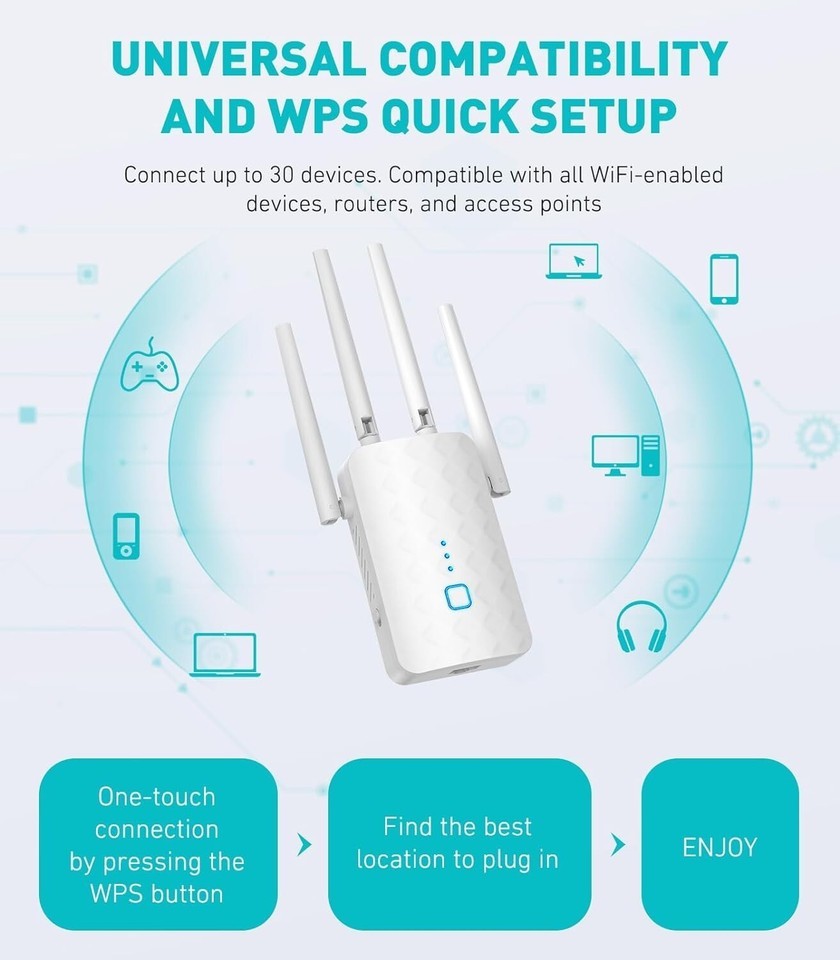 ?Surncest WiFi Extender signal range booster eliminate Wi-Fi dead spots, pumping out interference-free, lightning-fast data capabilities to all smartphones, smart speakers, IoT and Alexa devices, Blink, Ring, IP cameras, ROKU, FIRE TV Stick, PS5, and whatever WIFI supporting device the interwebs invents next.