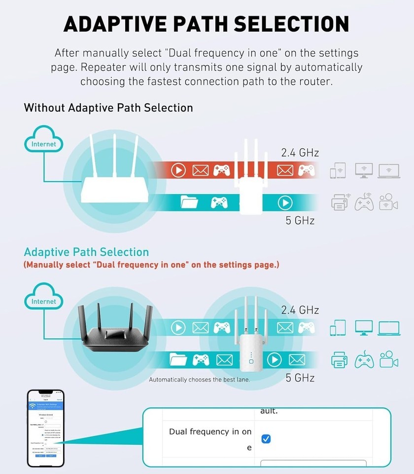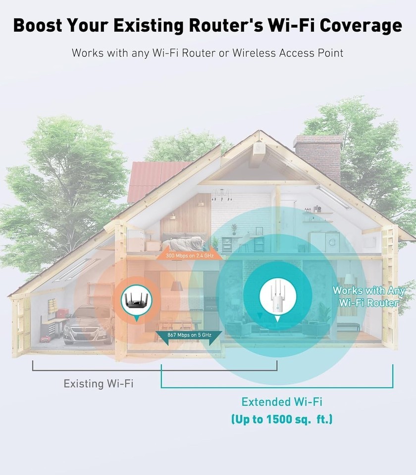 - 1.2Gbps WiFi Extender, wifi extender signal booster | Dual Band 5GHz&2.4GHz