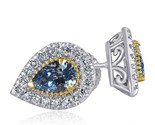 - 1.32 Karat Birne Kunstdiamanten Grown Blau Diamant Halo Ohrstecker 14k Weiß Gold