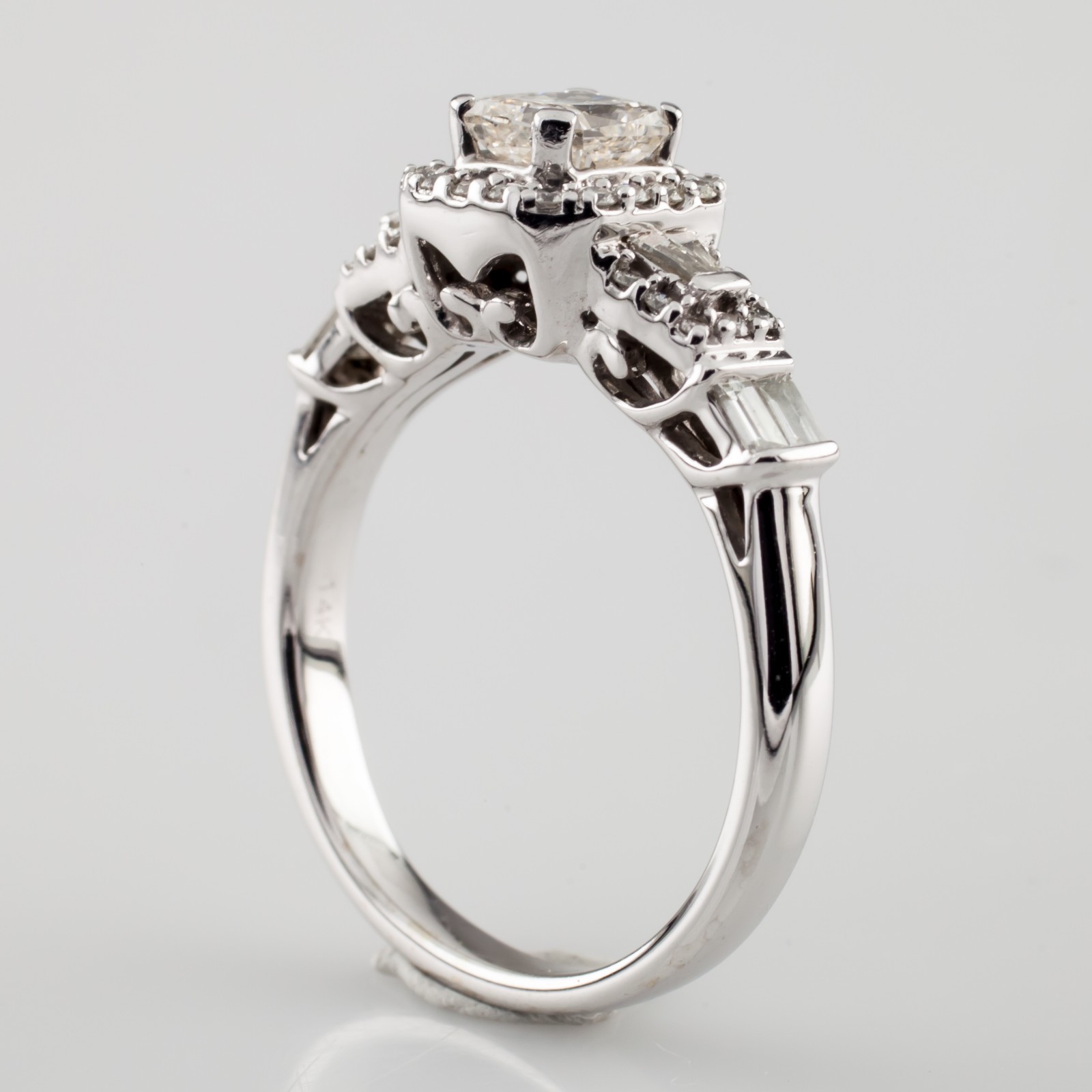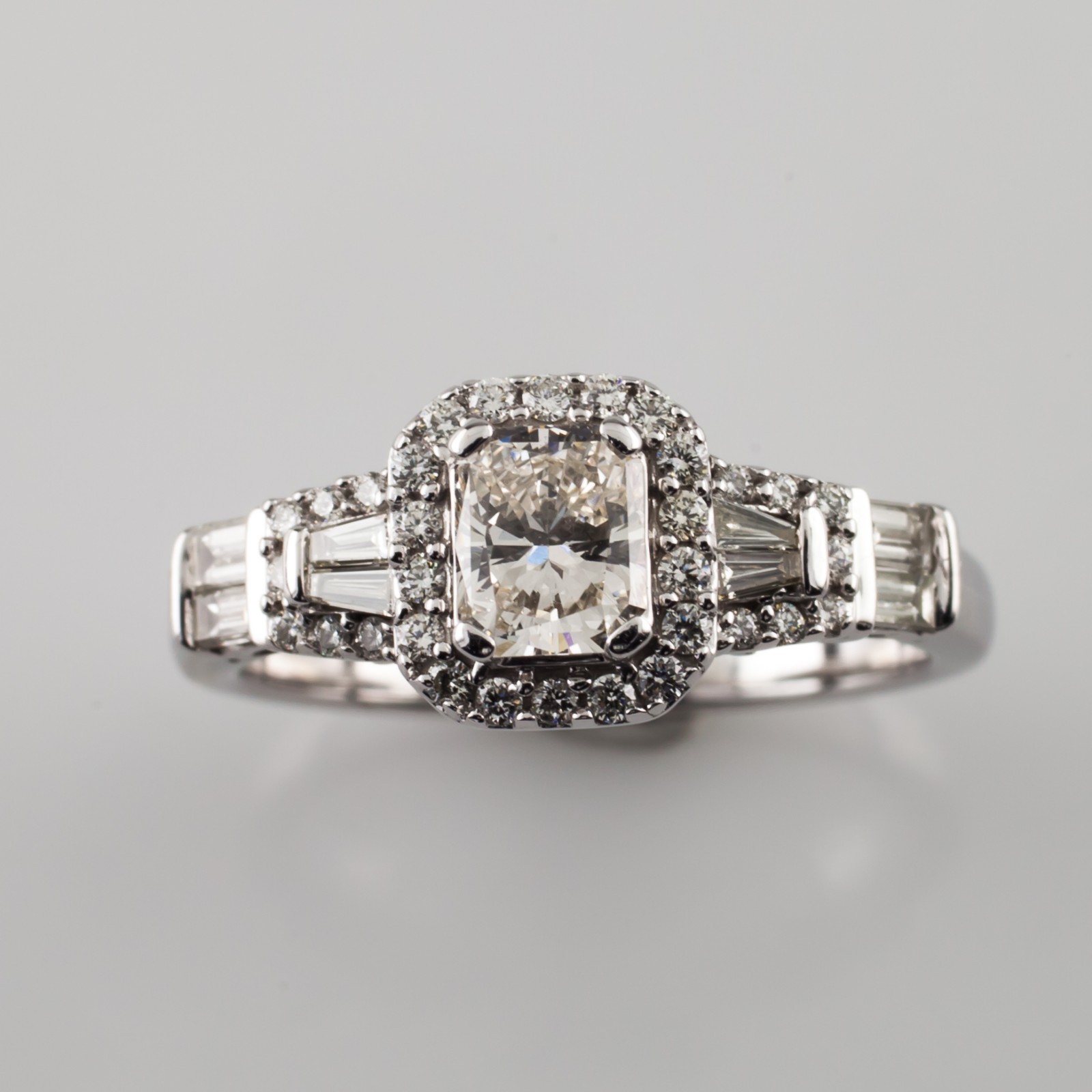 - 1.35 carat Radiant Diamond Halo 14k White Gold Engagement Ring Size 6.75