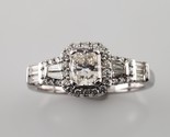 14k White Gold Radiant Diamond Solitaire Engagement Ring Accent Stones Sz 6.75