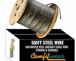 The product is a 1/4-inch by 500-foot galvanized steel aircraft cable wire with a 7x19 strand core produced by COMFITWEAR.